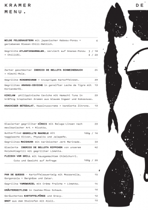 Kramer ist ein von Künstlern durchdachtes Restaurant mit detailverliebter Atmosphäre. Geschmacksexplosionen ispiriert aus Lateinamerika und Asien, krachendes Holzfeuer, kraftvolle Musik, und von Fabian Kramer vor Ort im restauranteigenen Keramikstudio kreierten Keramikschalen, deren urtümliche Formen die Aromen der Gerichte aus dem Feuer weiter vertiefen!